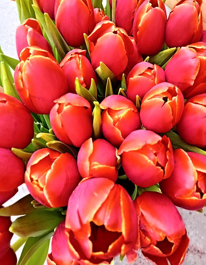 červeno-oranžové krásné velké silné tulipány za jedinečnou cenu